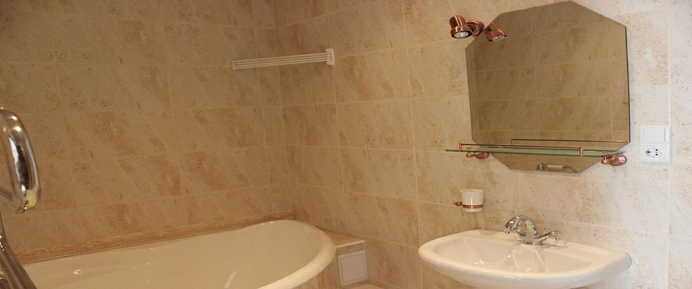 - просторная ванная комната (ванная, унитаз, умывальник с зеркалом, полотенцесушитель, все санузлы укомплектованы на проживание двух человек банными полотенцами, тапочками, принадлежностями для душа)